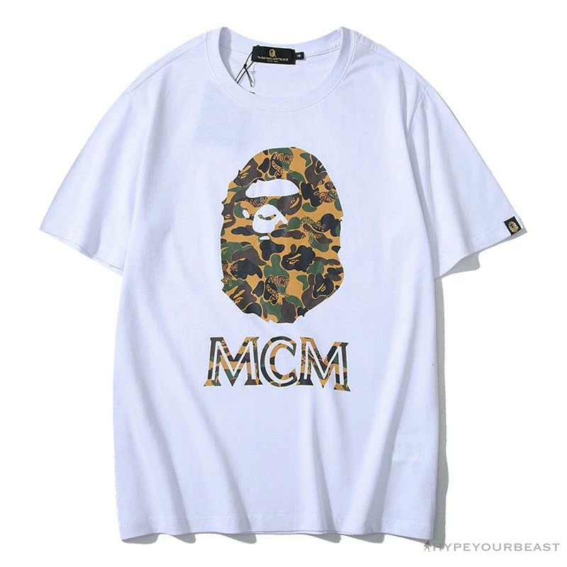 Hypeyourbeast BAPE X MCM Camouflage Ape Head Tee Shirt ‘WHITE’